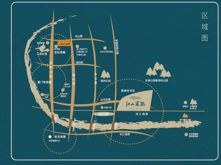 江山宸院是由吉林市海上置业有限公司开发,坐落于吉林市丰满区滨江南路1111号,地处吉林市南部、松花江上游区域。择址松花江极为珍稀的南向观江滨岸,拥享得天独厚的原生江岸土地;背倚吉林四大名山之一的朱雀山,仰山而立,尽享林海。依山枕水,鲜氧环绕,是江城的一块天赋贵地。