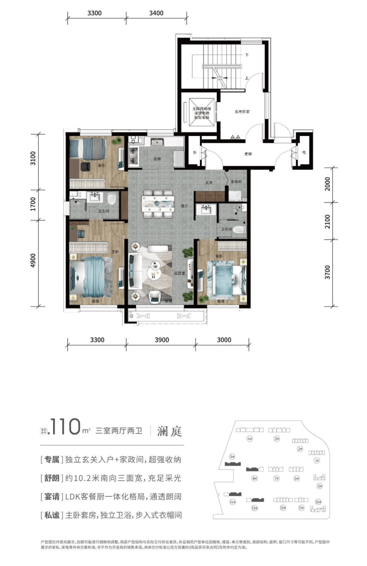 典藏级精—— 110㎡房源较比同类户型节省10-20平面积,同样的户型极致的改善
