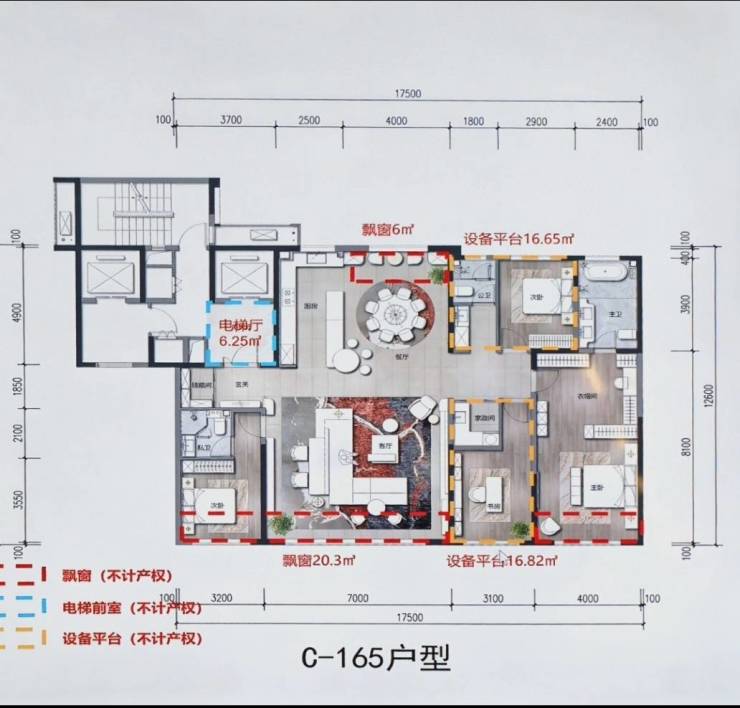 面积区间:143㎡ 实?️171㎡