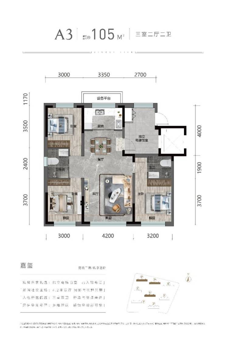 3. A3(105㎡ 三室两厅两卫):