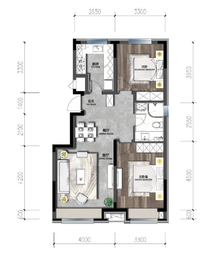 宽境小高丨建面约88㎡二室二厅一卫