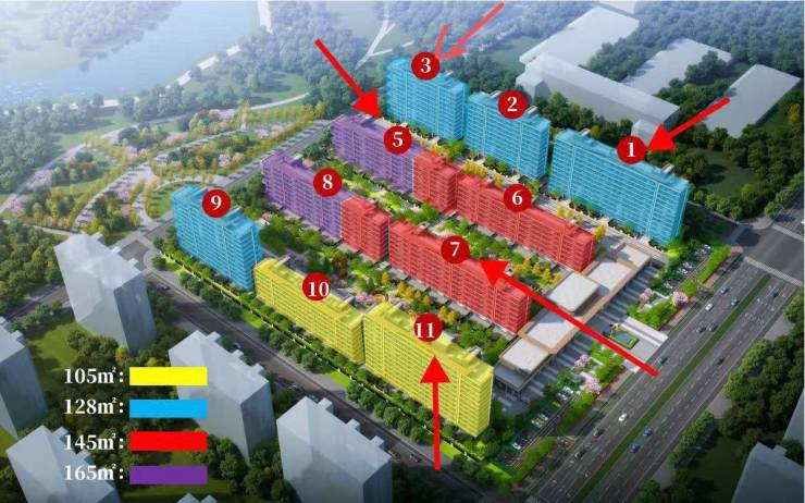 1、园区规划10栋楼,5# 6# 7# 8#是6-7层洋房,1#2#3#9#10#11#是11-12层类洋房