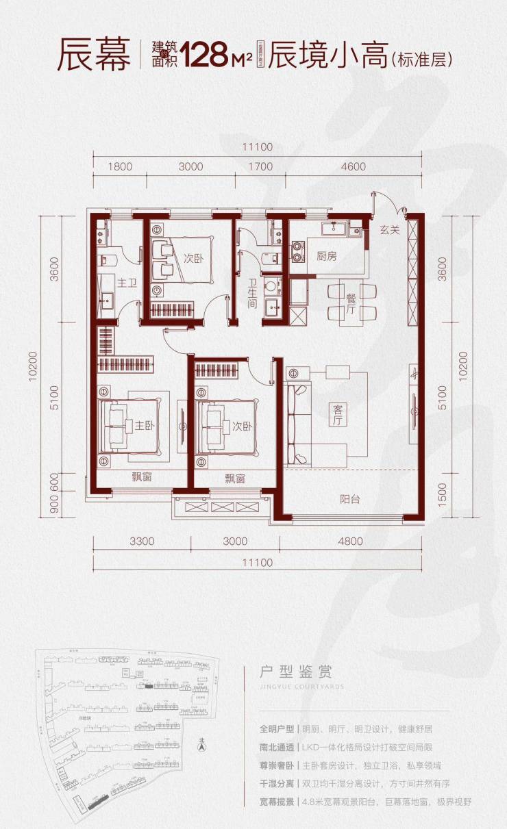 户型面积:小高建面约128-150㎡,洋房建面约136-157㎡