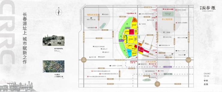 中车长春源位于台北大街与凯旋路交汇西北侧。长春老机车厂,中车长客厂址上。是中国中车响应国家“退城入园”号召,肩负央企“城市更新”使命打造157万方城市赋新之作。