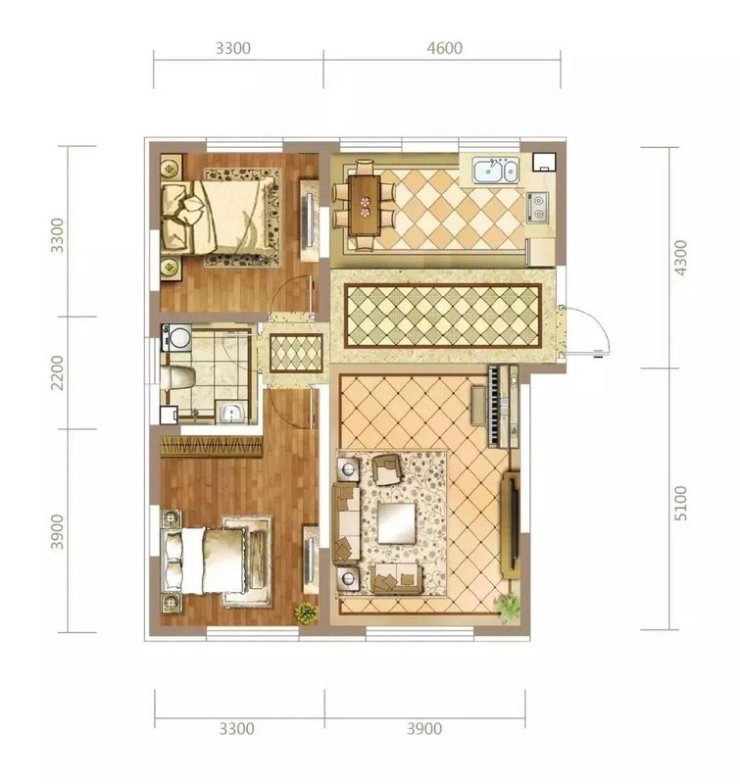 93㎡两室两厅一卫