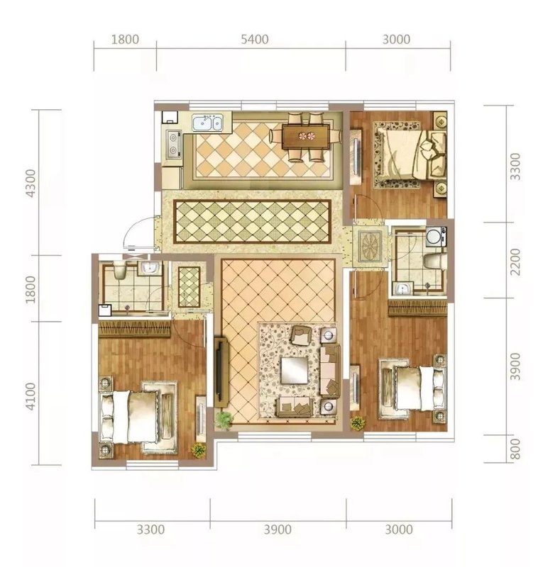 118㎡三室两厅两卫