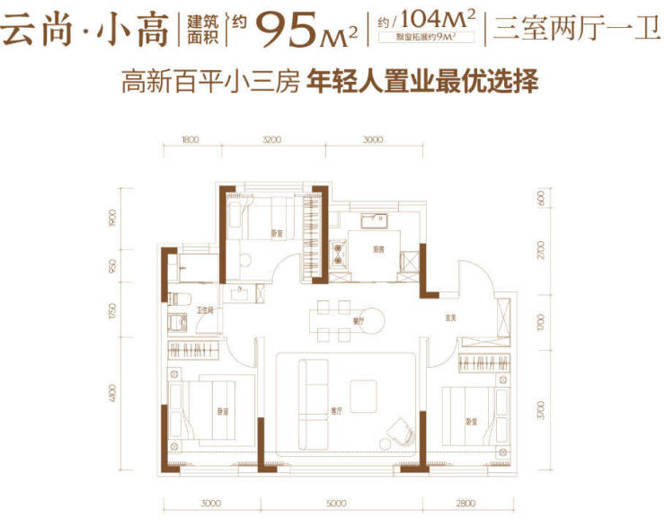 面积段:约95㎡三室/约110㎡三室/约125㎡四室