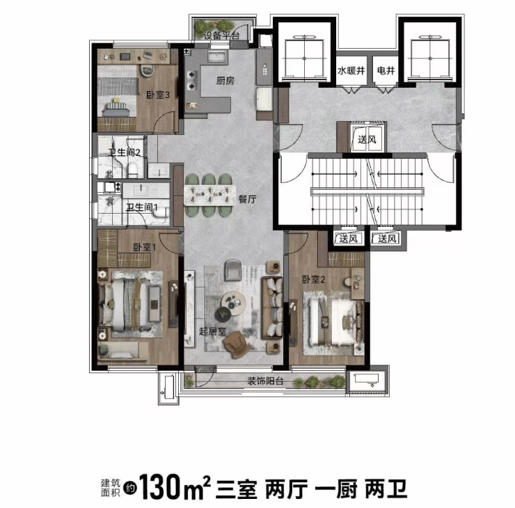 臻选好户型——110㎡房源较比同类三室两卫节省10-20平面积,同样的户型极致的改善