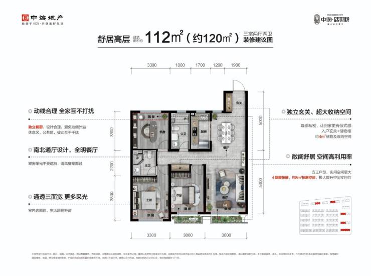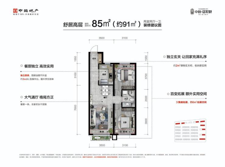两室大H格局,三室动静分离户型,南北通透,独立玄关让回家充满仪式感