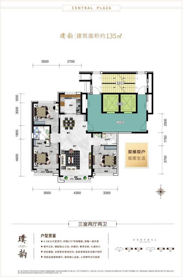 融汇中央广场从人性化角度出发,满足不同客群的需求,精心打造建筑面积约118㎡、135㎡、142㎡等多种户型。格局方正,采光通透,各功能区划分科学,从细节之处着手,尊享人居理想空间,开启主城中心生活。