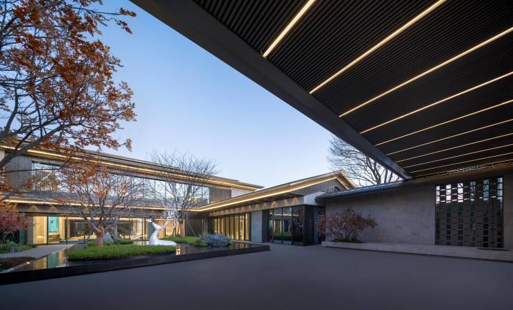 景观展示:整个园区按照宋代建筑风格进行设计,将沉浸式的园林景观融入门、庭、园、巷之中。园区采用古代王府规制,选取宋代最具代表性的“岳麓书院”景观布局,打造五进七园园林景观,层层递进,礼序尊崇;并提取了宋式书院的纹样与特色材质,打造景墙与地面铺装、精致小品雕塑等。
