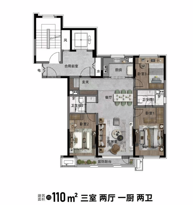 臻选好户型——110㎡房源较比同类三室两卫节省10-20平面积,同样的户型极致的改善
