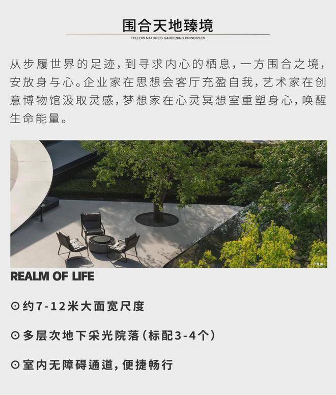 花园庭院:每户内赠 50-100 平私人花园,地下室配备 6 米挑高客厅及下沉式采光天井,提升空间层次感与自然采光效果。