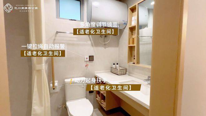 适老化设计体现在每个细节。适老化设计几乎涵盖了长者生活的方方面面:无高差地面防跌倒,定制家具圆角处理,智能马桶自动冲洗,最贴心的是床头、卫生间多处设置的一键报警装置,让长者24小时都有安全感。