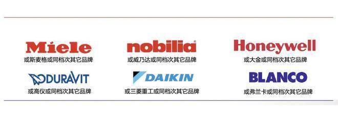 厨电5件套(油烟机、三眼燃气灶、洗碗机、烤箱、冰箱)均采用国际一线大牌美诺或斯麦格(或同档次其它品牌);厨房水槽和龙头采用铂浪高或弗兰卡(或同档次其它品牌);热水器选用瑞美或能率(或同档次其它品牌);
