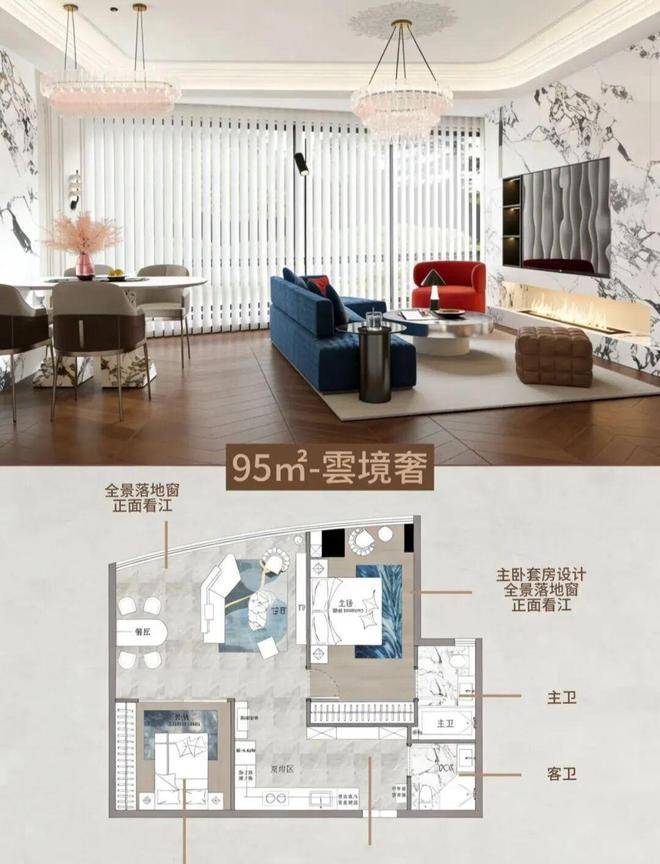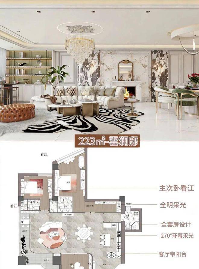 高区无遮挡瞰江视野,270°环幕落地窗,一城江景与天际线尽入眼底。