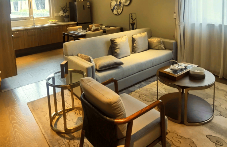 1. 适老化居住设计:所有户型均朝南设计,日均光照超4小时,配备全屋地暖、新风系统及智能家居设备。家具边角圆润,插座位置抬高15厘米,减少弯腰操作。