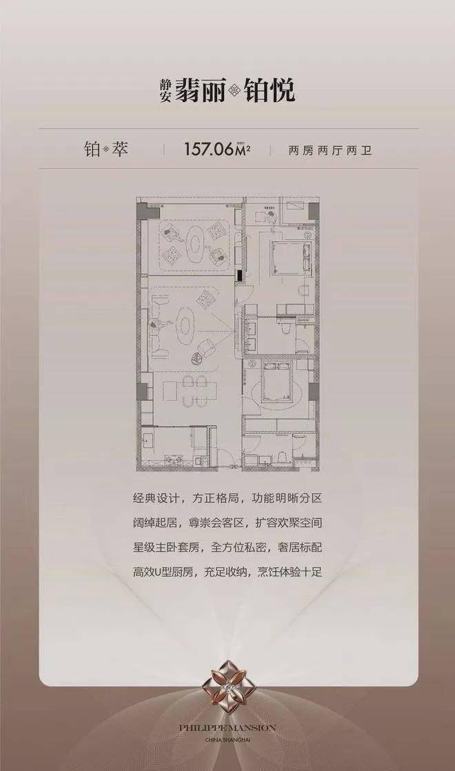 【铂萃】建筑面积约157.06㎡丨2房3厅2卫