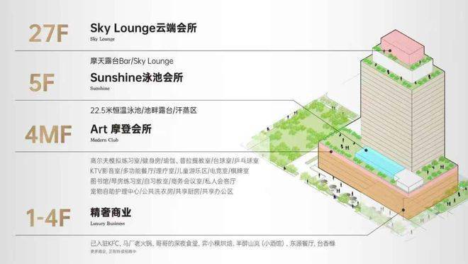 尽管面积紧凑,但项目通过3500㎡尊崇会所(含恒温泳池、室内高尔夫、Sky Lounge等20项功能)及24小时管家服务,弥补了小户型的局限性,定位为“服务式公馆”,吸引年轻白领、投资客及注重生活品质的高净值人群。