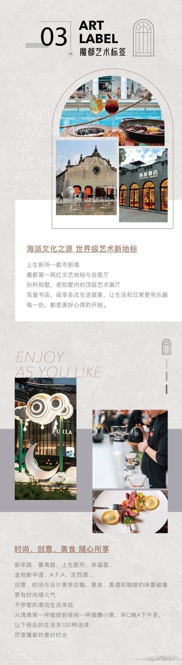 新华路、番禺路、上生新所、幸福里、金地新华道、A.F.A、定西路…,创意、时尚与设计美学交融,美食、美酒和咖啡的味蕾碰撞,不停歇的潮流生活体验,更有时尚烟火气,不停歇的时尚潮流体验,从清晨第一杯咖啡到夜间一杯微醺小聚,早C晚A下午茶,让下班后的生活多100种选择,尽享魔都的曼妙时光