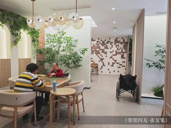 邻里四友会客厅(1、2号楼中庭)约1000平的丰富场景,包含书友集、画友集、花友集和雀友集,是真正尊重高龄长者意愿的活动场景。长者只需下楼,便可参与到日常的活动中去。