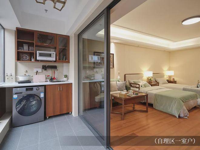1-2号楼高龄自理区设有254套独立生活公寓,设有一室一厅套间、一室户两款房型,建面约65-85平米。其中一室一厅面宽达6.8米,房型全南,带阳台,可实现拎包入住。