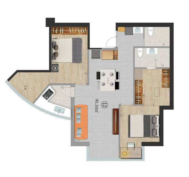 •得房率75%,空间实际利用率高,让您居家生活游刃有余