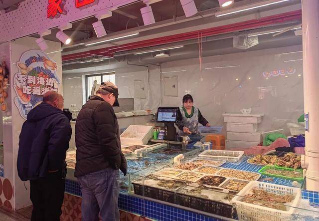 鲜活生蚝、花螺、海瓜子......在惠民静华集市内,商户刘国明新开设的海鲜档口吸引了不少市民前来购买。