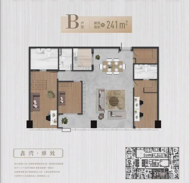 雅致 B户型丨 241㎡ 3房3卫
