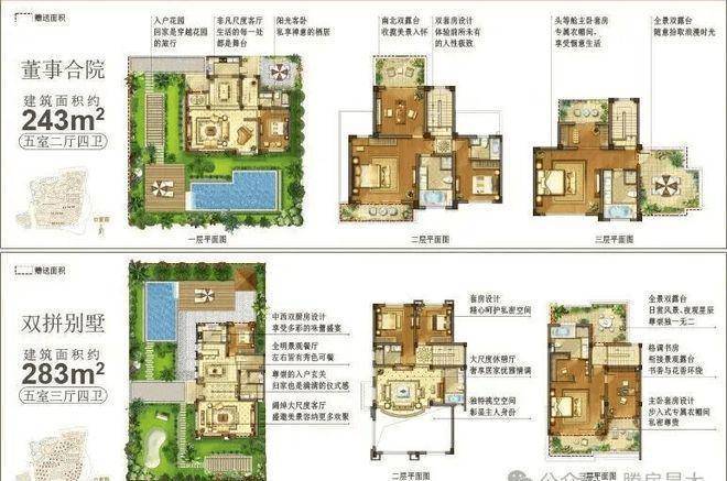 荷玛诗湾主推建面 约203-283㎡法式双拼别墅&董事合院 ,上有露台、下有庭院,有天有地,是真正纯粹的别墅产品。
