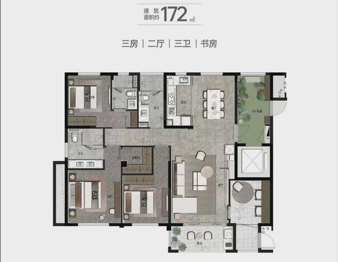 建面约172㎡4房2厅3卫▼