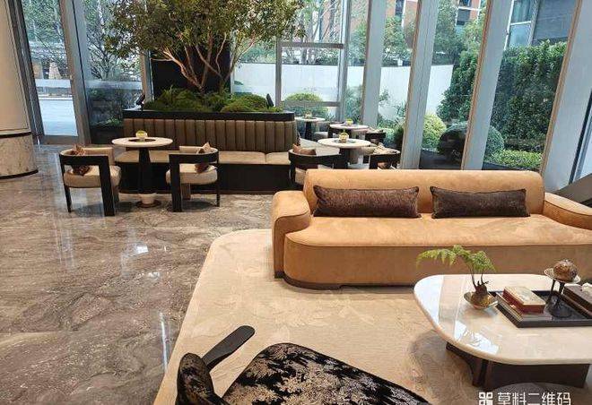 水幕迎宾景墙:一层花园归家区域的水幕景观墙设计,石材、跌水、绿植相呼应的景观细节打造。 室外迎宾穹顶:大堂向室外延伸的大型遮雨穹顶,打造酒店式迎宾落客风雨廊,仿佛在向尊贵来客招手,私享园林城市诗意栖居