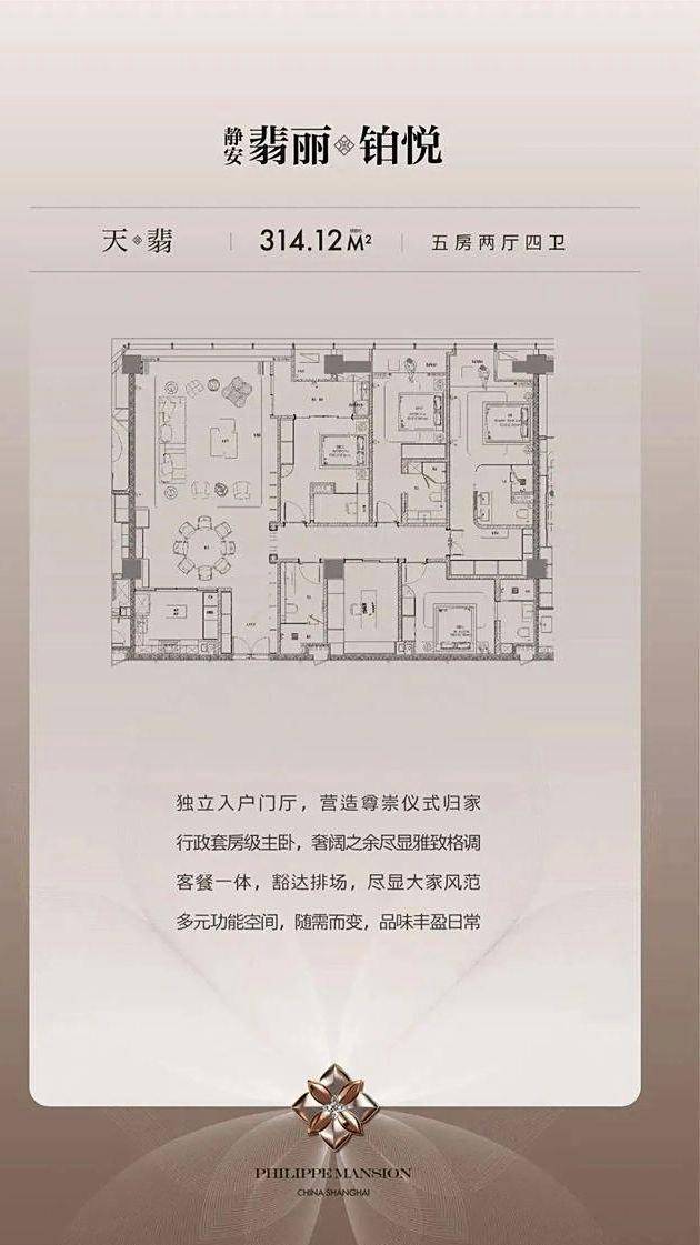 天翡户型:约314㎡|5房2厅4卫(独立入户+3套房)。