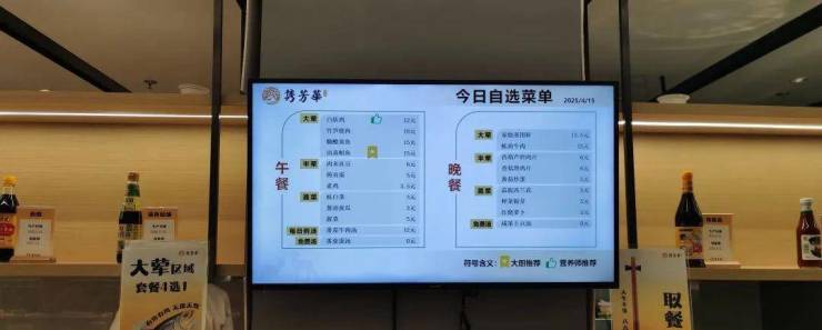 不是为考察者刻意做的菜肴,每人一份同样的三菜一汤。入住者可以自助挑选,按照菜价扣除餐卡充值费用▼