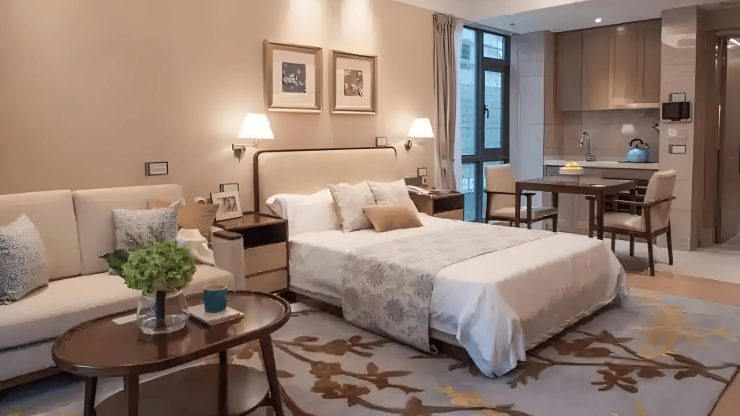 社区提供多种房型供长者选择,包括单人间、双人间、一房一厅、两房一厅及套房等,面积从45平方米至150平方米不等。单人间月费在12000元至18000元之间,配备独立卫浴、智能护理床、毫米波雷达跌倒监测系统等高端设施,为长者提供私密、舒适的居住空间;双人间月费8000元至12000元,适合伴侣或朋友共同入住,既能相互陪伴又能节省费用;VIP套房月费30000元起,房间内装修豪华,设施一应俱全,尽显尊贵与品质。无论长者选择哪种房型,都能在社区中找到适合自己的温馨家园。