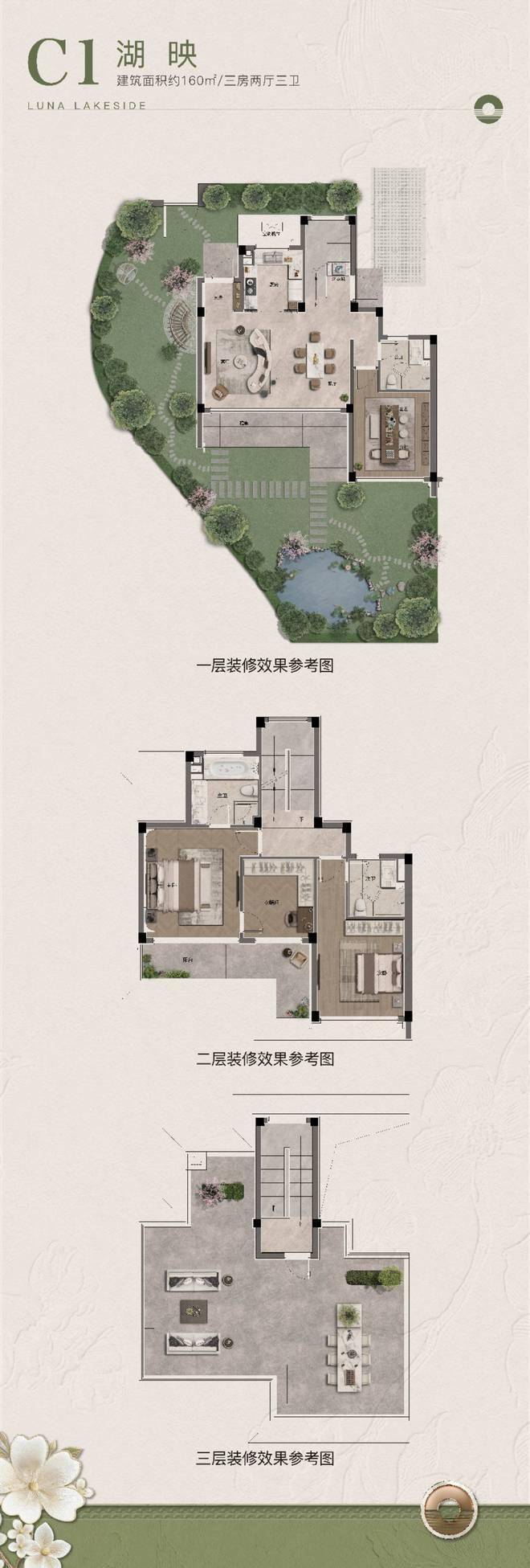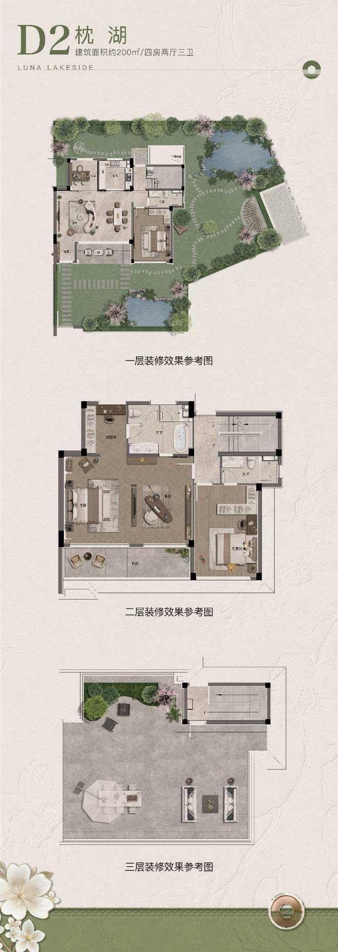 最大花园近400㎡,一楼檐廊听雨,三楼露台赏花,上庭下院,每一层都有延伸生活的花园空间。
