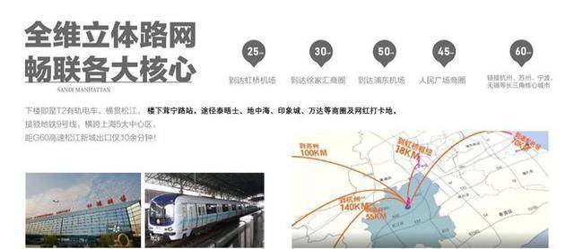 【高速公路】项目可上G60高速,连接G1501、G15和S32三条高速,到虹桥机场到浦东机场。规划中的沪松快速路,将连接松江枢纽和虹桥枢纽,会使出行更加便捷