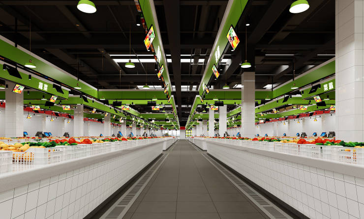 明亮的灯光、整洁的台面、中央空调和新风系统——卖菜也能冬暖夏凉、体面舒适