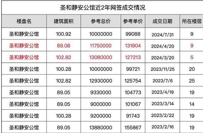 我们直接看今年的成交最高价, 1套9楼的89㎡户型,成交单价约13.2万/㎡。