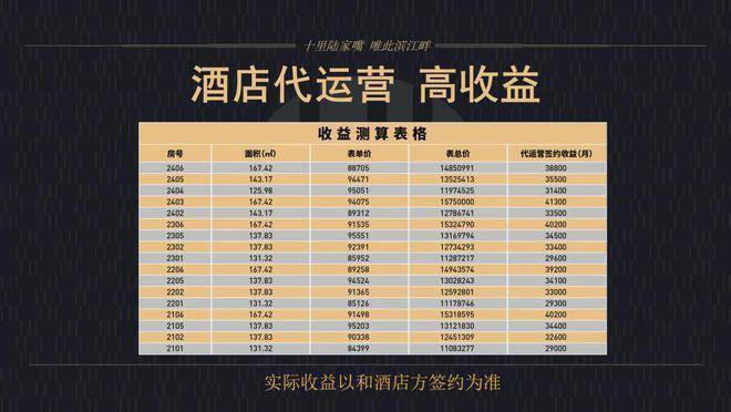 珑悦滨江高区房源收益测算