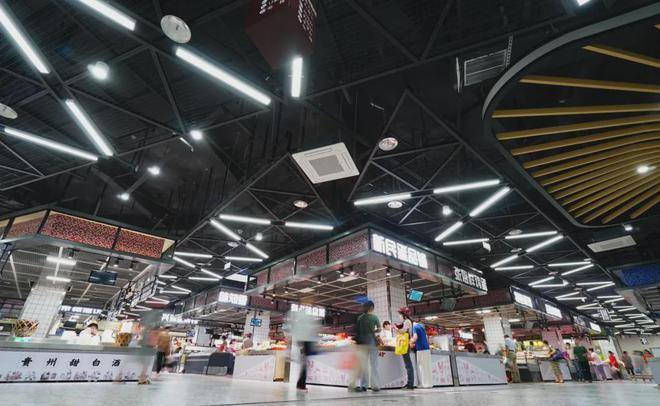 近千平方米的空间分区明确,既有售卖蔬菜、水果、肉类、水产、豆制品等商品的菜场专区,也有汇聚社区餐厅、慈善超市、老字号熟食、美食餐饮等品牌业态的商业专区,同时涵盖配锁、改衣、小家电维修、钟表维修等便民服务专区。
