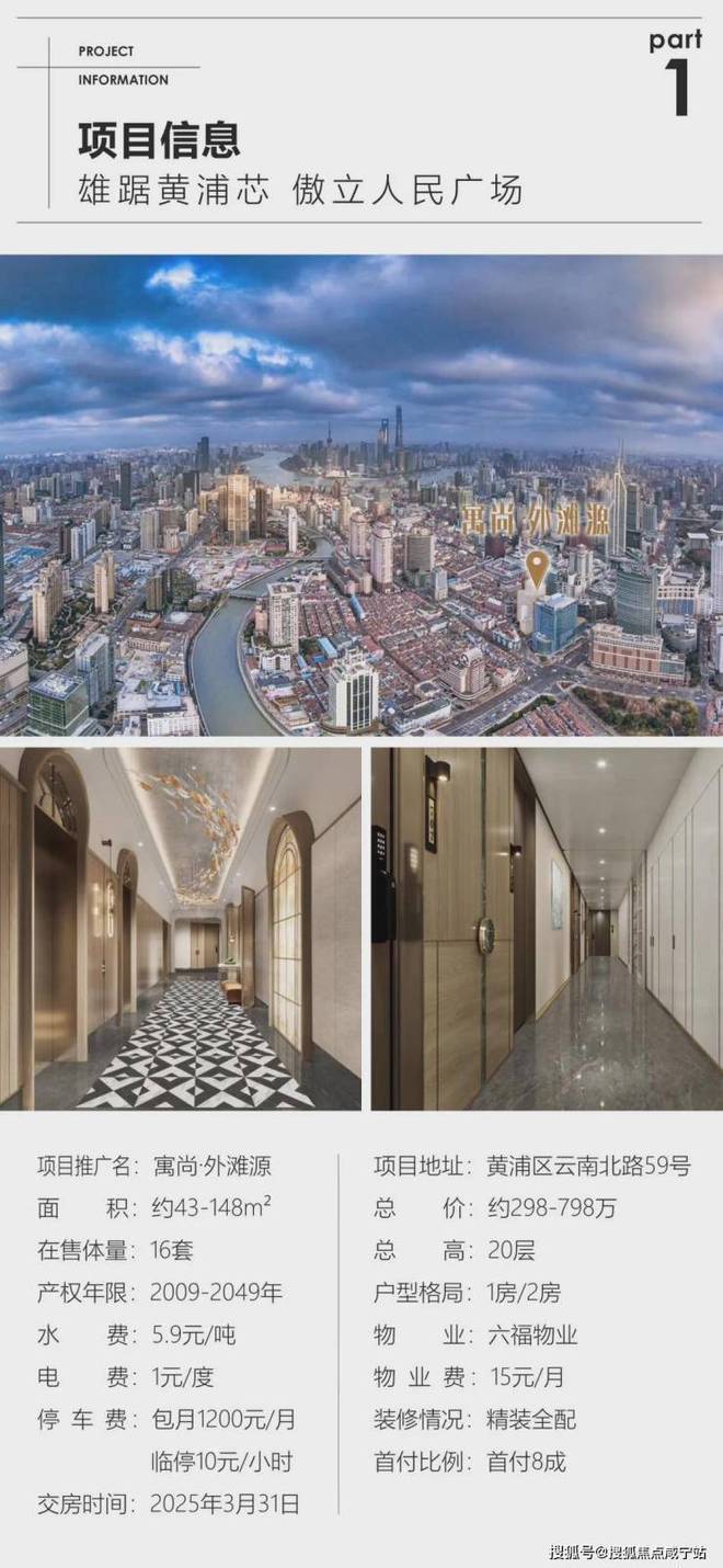 黄浦芯内环内南京东路商圈,【寓尚外滩源】新出一手整层纯居住公寓,带阳台的小户型,建面43-148平,精装修全配交付 仅14席!