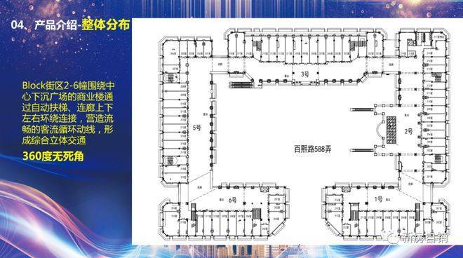 同时商业区围绕中心下沉广场的商铺,可通过商业楼的自动扶梯、连廊上下左右环绕连接,营造流畅的客流循环动线,形成综合立体交通,360度无死角