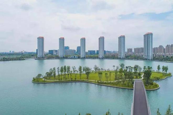 绿地景观沿黄浦江和兰香湖沿岸生长形成有序又自然的生态景观。