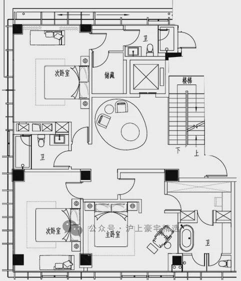 六层:卧室套间 起居室 多功能厅