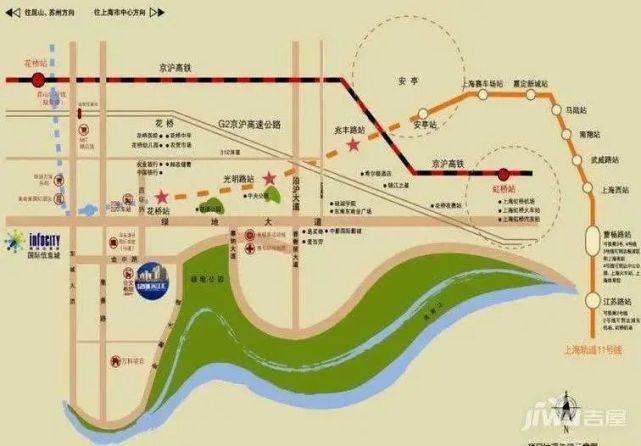 3. 本案比邻上海11号线直通上海市区及在建苏州S1号线轻轨直通苏州市区,左右逢源,东西交汇,真正做到当日往返双城通勤。