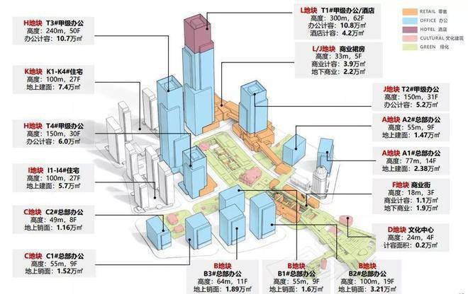 其中4栋超高层,分别为300米、240米以及2栋150米塔楼组成。