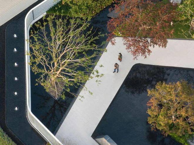 蜿蜒曲折的园路让人仿佛穿越在山水画卷中,水景如镜,豁然开朗,如同长卷展开,映水卷营造了一个精致优雅的景色,天光云影、花草树木、光屏与建筑的倒影在水面上交相辉映,令人陶醉其中。人们漫步其中,感受自然与建筑的完美融合。水面的映衬赋予空间更深厚的层次感,仿佛将人们带入一个神奇的世界。空间感由此延伸。工作之余,水畔驻留,心旷神怡。