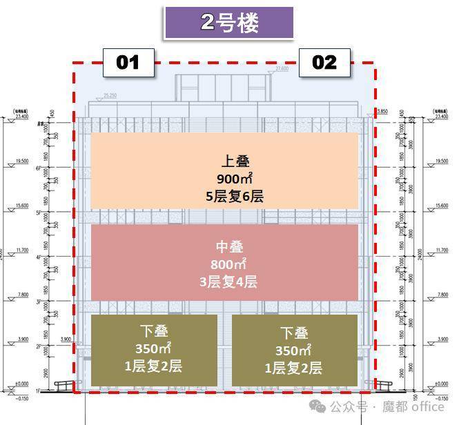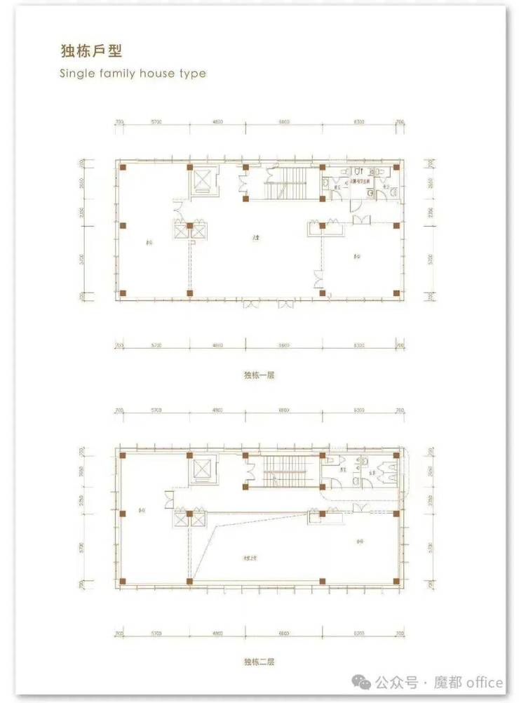 项目分为南区和北区,北区为一期,南区为二期。一期北区共有12栋,单栋面积710~2400㎡,二期南区共有14栋,单栋面积约为856~4800㎡,租售同步。