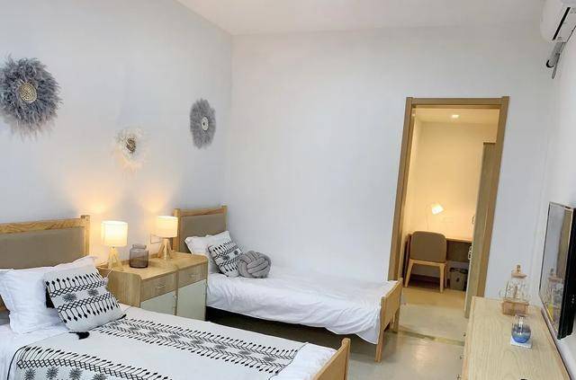 房间设计:单人间面积约28平方米,双人间人均面积18平方米,均配备中央空调及地暖系统。床头安装双控开关,储物柜深度达60厘米,方便轮椅使用者使用。